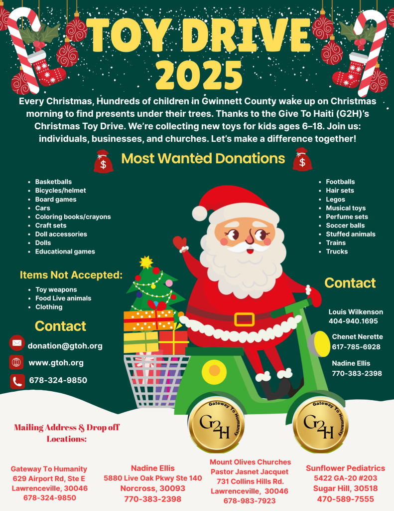 Give to Haiti is hosting its 3rd Annual Christmas Toy Drive, and we want YOU there! It’s about creating moments of pure joy, lighting up little faces, and reminding our community that love shows up in action. You can help make that moment happen! Together, we’ll transform ordinary December days into extraordinary memories for children right here in our community.๐Ÿ“… Sunday, December 21, 2025